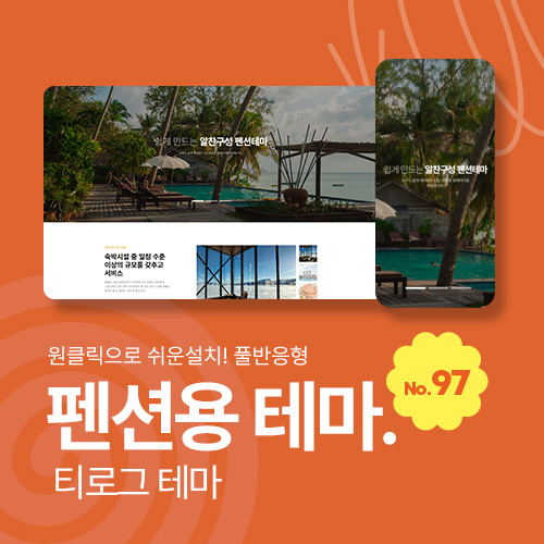 [그누보드테마97] 티로그테마, 기업용 반응형 테마, 초보도 쉽게 수정가능, 관리자에서 메뉴 생성 및 관리, 그누보드5.5, 풀반응형, 펜션